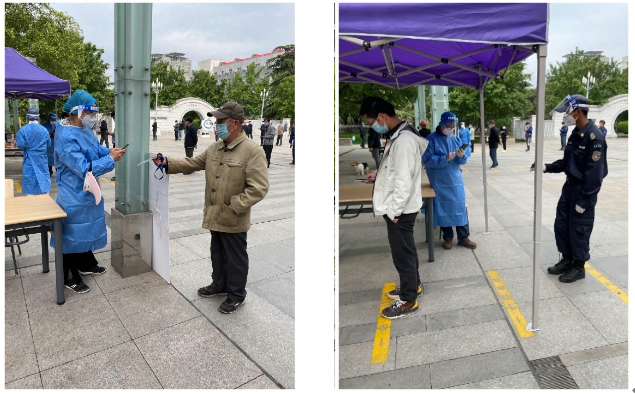 教职工党员踊跃报名、支援学校疫情防控工作。在毓秀广场的核酸检测采样点,教职工志愿者们有条不紊地配合医务工作者们进行核酸采样,完成前期扫码、信息核对、秩序维护等任务。他们耐心细致、认真负责,圆满完成现场志愿服务。