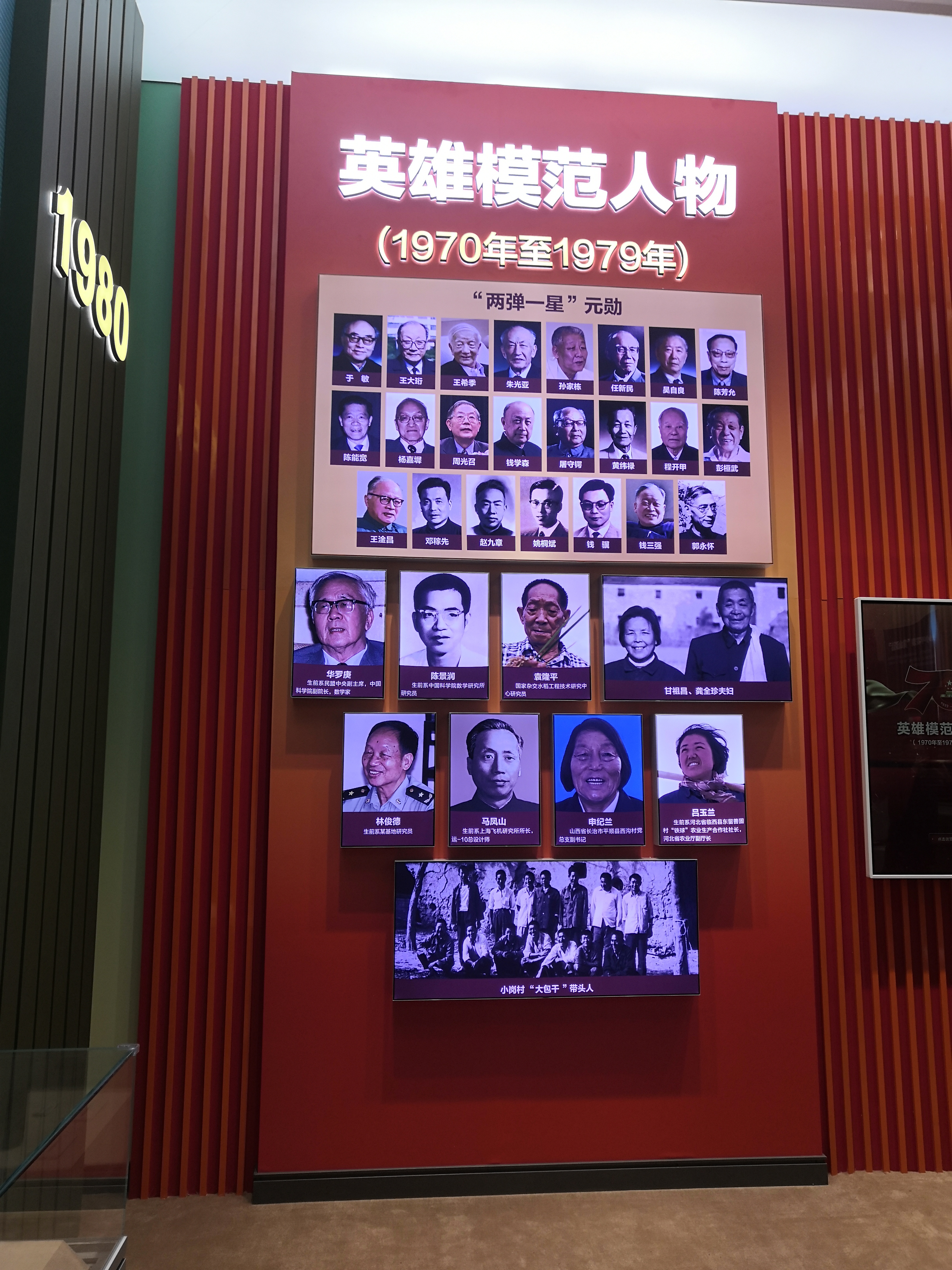 在主展厅中,成就展览采用编年体形式,分为序言、屹立东方、改革开放、走向复兴、人间正道5个部分,以1700多张历史照片、180多个视频、650多种实物述说了新中国成立以来所发生的翻天覆地的变化,并且对70年来相关领域取得的150个“新中国第一”进行重点展示,生动地呈现出新中国成立70年来,在中国共产党的坚强领导下,中华民族迎来了从站起来、富起来到强起来的伟大飞跃。