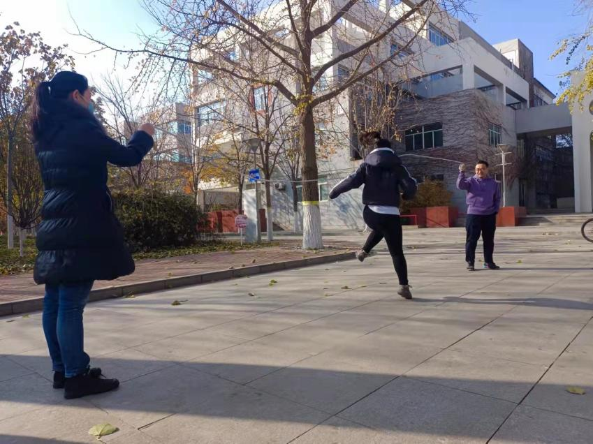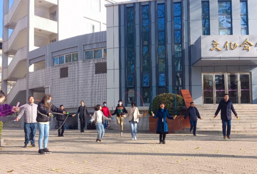 分工会在文化会堂前空地组织开展了教职工健康系列活动之—的“工间跳绳比赛 ”活动。