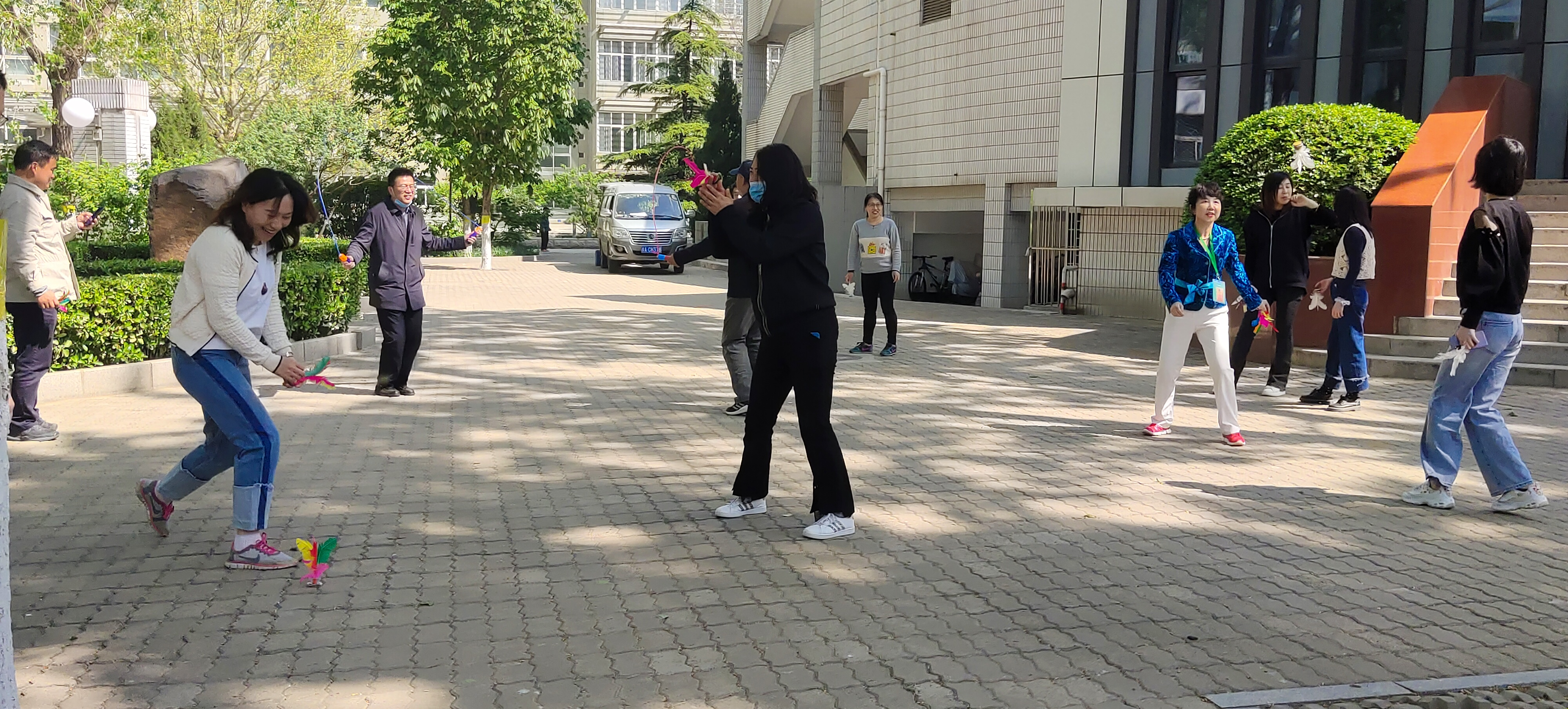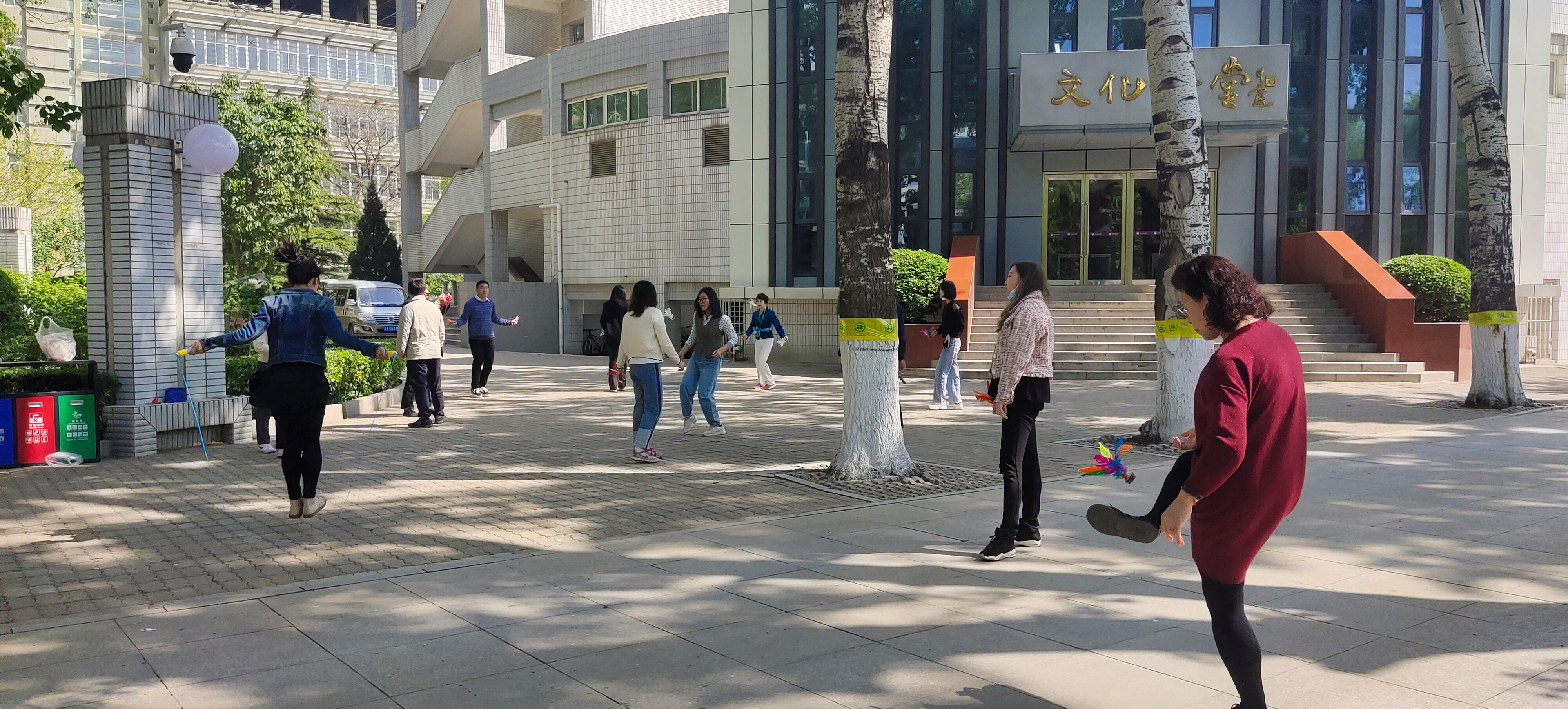 4月18日-4月22日上午十点钟,由学院工会组织老师们在文化会堂门口,进行踢毽子健身活动。老师们有的自己一个人踢,有的组队进行踢毽子接力。