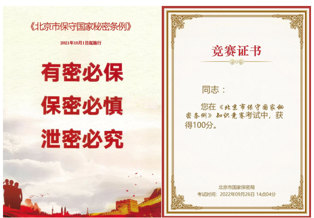关于开展《北京市保守国家秘密条例》(以下简称《保密条例》)知识竞赛答题活动的通知要求,在全院开展《保密条例》学习培训答题活动。