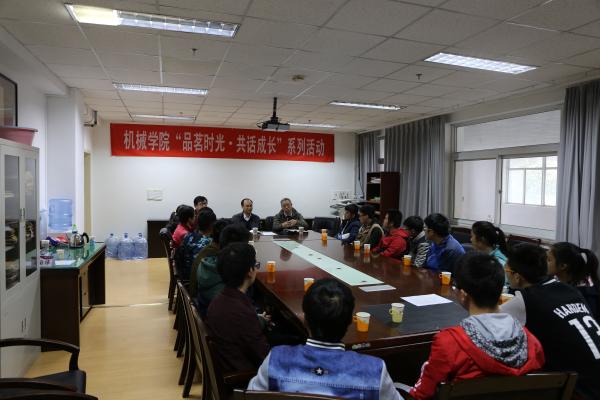 11月10日下午,机械学院在博闻楼203举办“品茗时光.共话成长”第三期活动。机械学院党委书记铁军、党委副书记陈勇钢、年级辅导员周鹏宇和16级家庭经济困难学生举行座谈,以“自尊.自信.自强”为主题,围绕生活、学习、思想等话题开展交流。