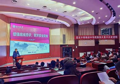 学院党委副书记石卉首先向同学们传达了学校疫情防控政策,强调在校园内同学们应做到出门佩戴口罩、诚实备案、遵守校规校纪、增强防疫安全意识、按时参加核酸检测。当前首都疫情防控形势严峻,各位学生干部要坚决克服麻痹思想、厌战情绪、侥幸心理、松劲心态,以高度的政治责任感,扎实做好疫情防控和安全稳定工作。在会上,石卉结合北京高校发生的校园安全稳定案例、电信诈骗套路、师生人身安全经验等,开展安全教育,进一步强化团学骨干和全体学生的“大安全观”。