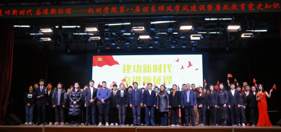 优秀党务工作者和“立德树人”优秀共产党员、优秀党支部颁发了纪念品;学院领导为党史知识竞赛获奖党支部代表队颁发了获奖证书;“立德树人”优秀共产党员代表魏领会老师带领全院党员重温了入党誓词。