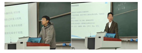 钱盛向与会学生介绍了考研备考期间的学习方法以及在各个复习阶段的注意事项,并向与会学生推荐了考研用书。他表示,考研不仅是一场知识的较量,更是心态与生涯规划能力的考验,建议同学们理性科学的制定个人考研目标。他建议学生在紧张的备考之余保持户外运动、注重饮食平衡,以平稳的心态进行备考。报考北京航空航天大学并顺利进入复试的邹江宇同学分享了自己的考研历程和经验,内容涵盖了信息收集、备考策略、心态调整、时间管理等多个方面,并对同学们关心的各类问题进行了现场解答。