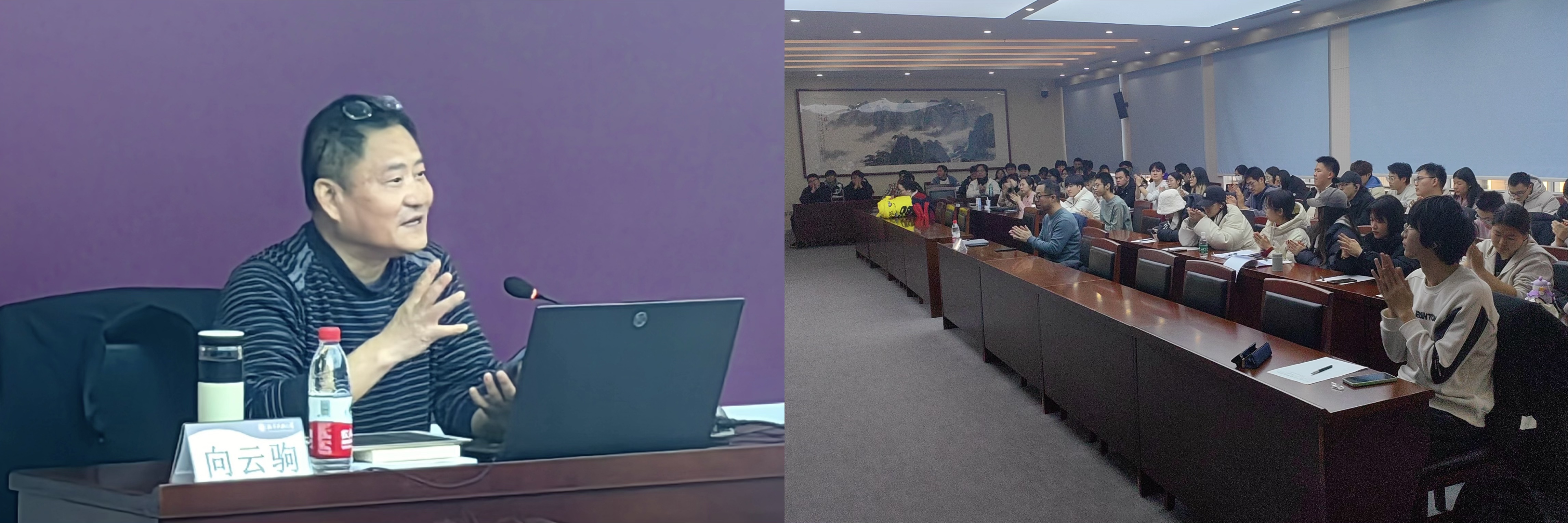 讲座中,向云驹教授生动讲解了“大两河文明”——黄河文明与长江文明的考古发现、起源特征与相互关联。他说,我国考古现当代发现,有力表明中国早期文明多点起源、多点发生,呈现出“满天星斗”、“星火燎原”之势;这些在各地考古发现的文明之间具有明显的时空关联性、贯通性。其中比较突出、并对后来中华文明产生重要影响的,就是“大两河文明”。“大两河文明”的艺术文明,给我们提出了重述、重写、重塑中华艺术史乃至中华文明起源的时代课题。他引用著名考古学家苏秉琦先生的话说:“世界上没有哪一个像中国如此之大的国家有始自百万年前至今不衰不断的文化发展大系。”向云驹教授的报告,深刻阐释了中华文明所具有的连续性、创新性、统一性、包容性、和平性特征。他指出,青年一代承载着五千年中华优秀传统文化,要牢固树立文化自信,自觉扛起建设文化强国的责任。向云驹教授的报告内容丰富,材料翔实,激发了与会师生对中华文化的热爱。