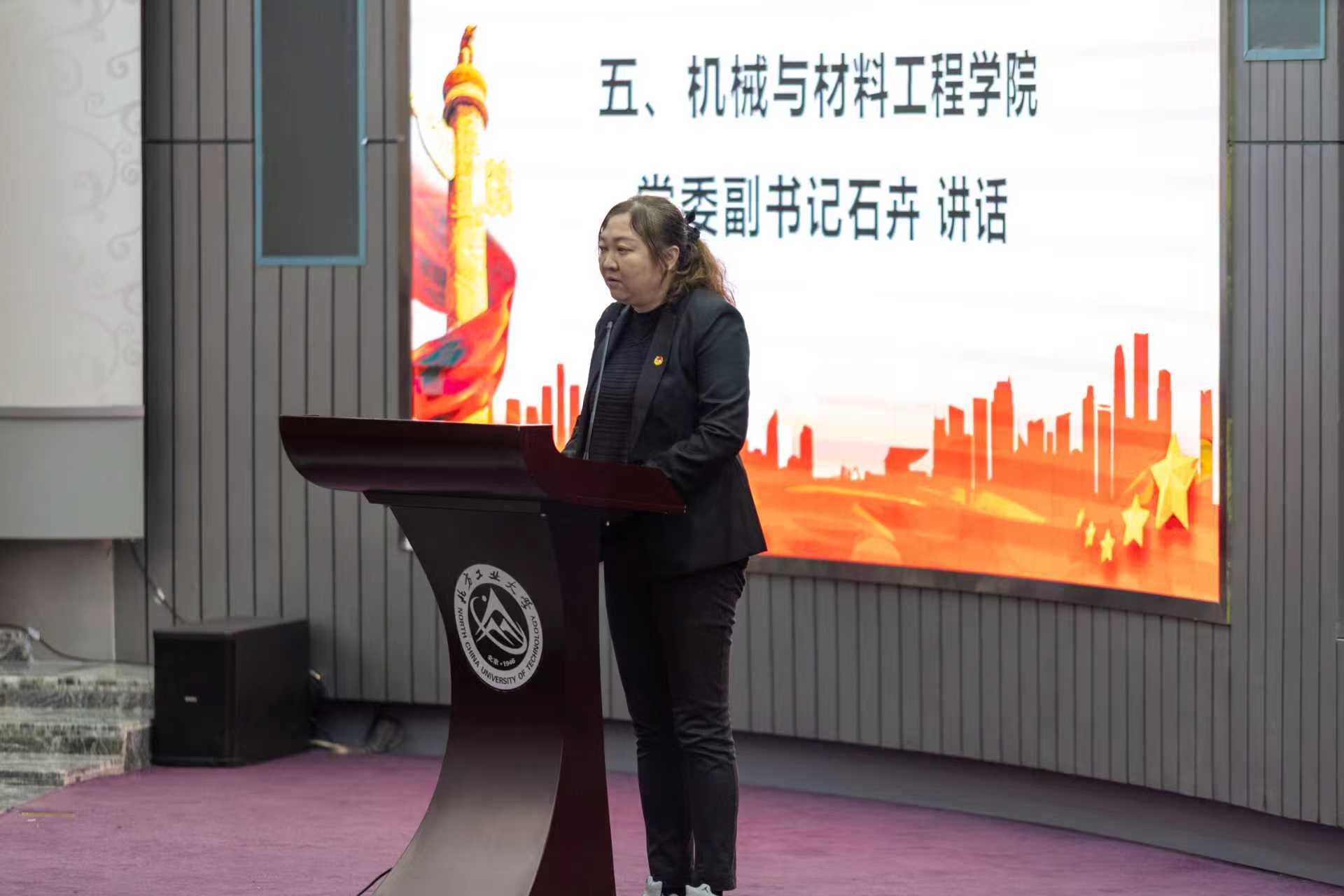 石卉代表学院党委对上一届团学骨干的辛勤付出表示了中心的感谢。她充分肯定了学院学生会、研究生会一年来在加强政治引领、服务学院工作、推进学风建设、做好学生服务等方面开展的扎实工作和有益探索。同时,她对学生代表们提出三点希望:一是希望同学们坚定理想信念,厚植家国情怀,树立正确的政治方向,成长为高水平的应用型人才,扛起工业兴国的重任;二是希望提升个人本领,强化综合素质,把学业作为首要任务,并通过积极参与科技竞赛、社会实践和志愿服务等方式来锻炼自我;三是希望同学们发挥骨干力量,在学习和生活中都起到先锋模范作用,走在前、做表率。她希望同学们进一步加强思想建设,听党话、跟党走;进一步加强队伍建设,做服务、讲奉献,不忘初心、扎实学习、勇于探索,在青春的大舞台上实现自己的目标。