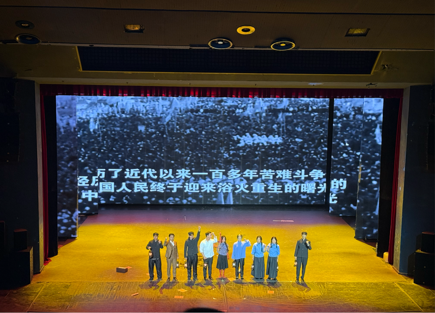 当舞台上响起“外争主权,内惩国贼” 的呐喊时,现场学子自发响起雷鸣般的掌声,跨越百年的精神共鸣在剧场内激荡。这场跨越时空的精神对话,让大家深刻体会到百年前青年先辈的家国情怀与斗争勇气,更坚定了传承红色基因、续写时代华章的信念。