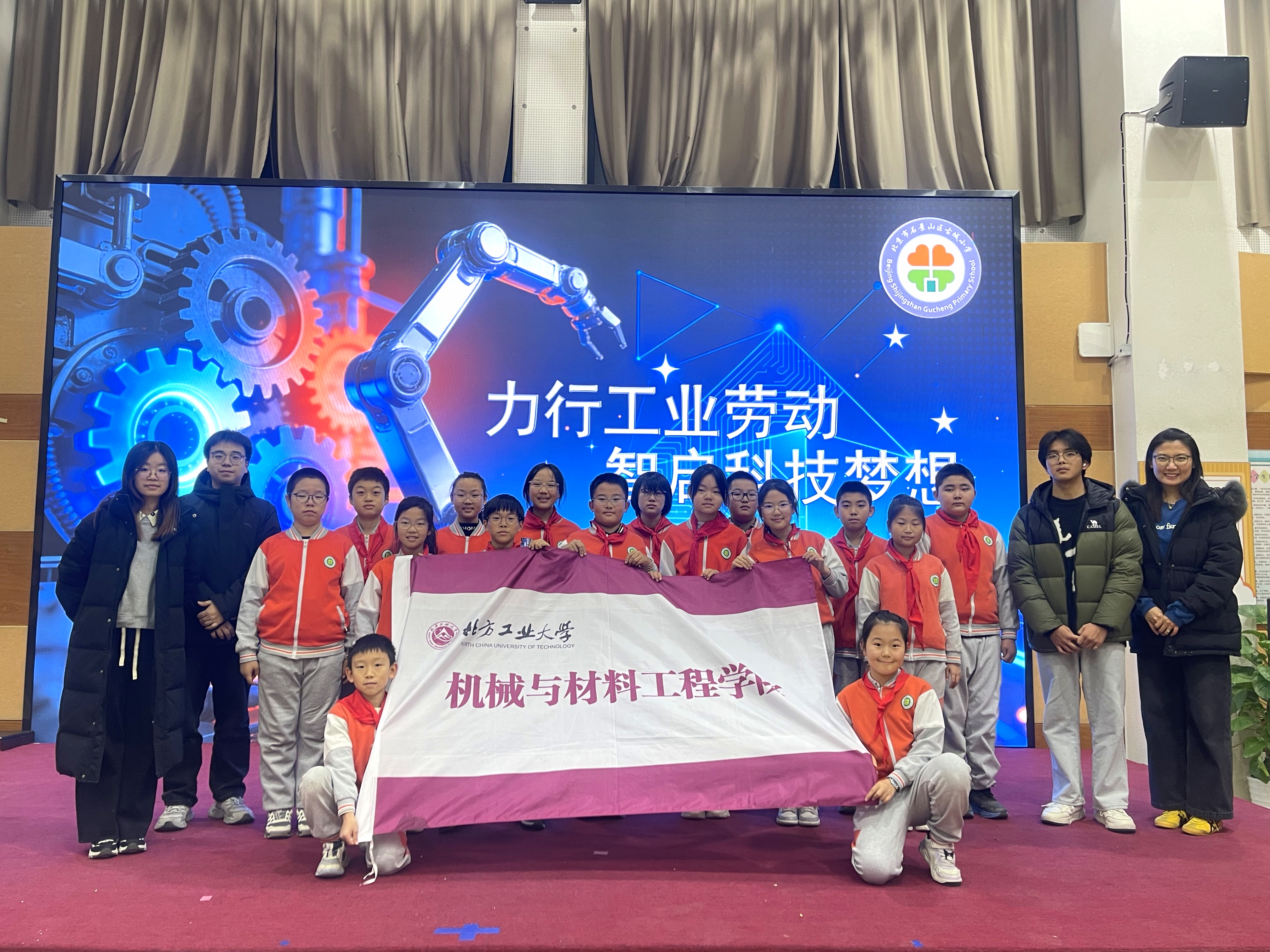 组织志愿者服务队前往石景山区古城小学,协助开展“力行工业劳动,智启科技梦想”校园科技嘉年华活动。