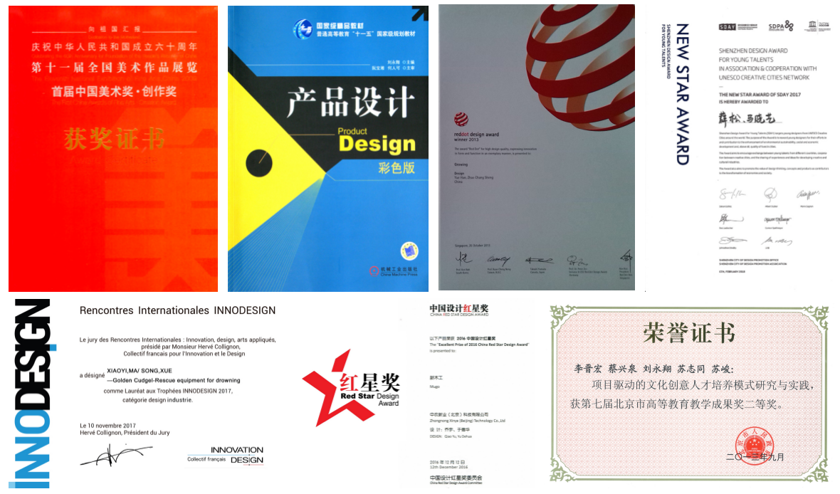 代表成果:中国旅游商品创意设计大赛、全国大学生工业设计大赛、中国设计红星奖等。